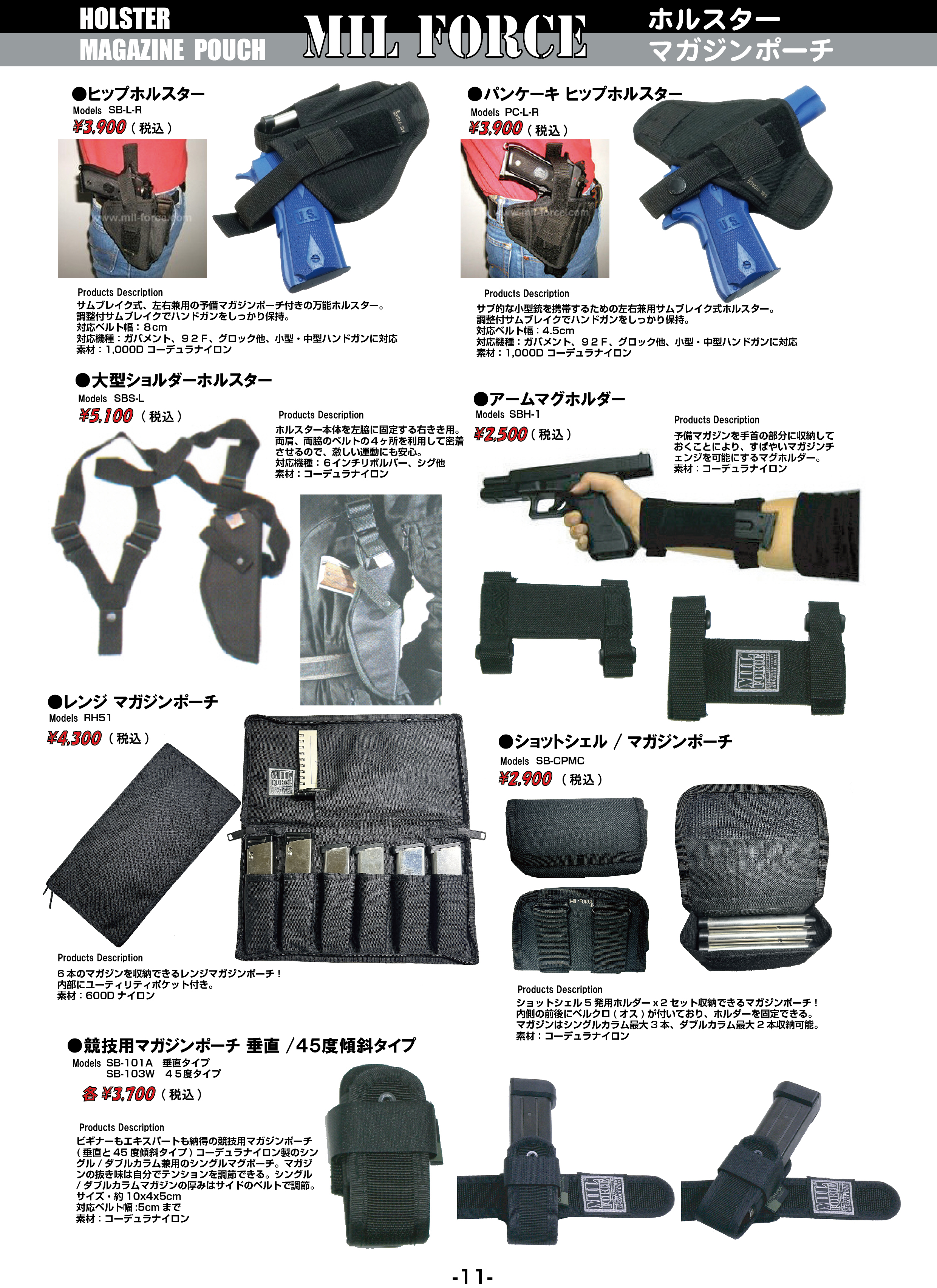 ミルフォース社は1988年の設立から現在も尚、アメリカ合衆国、英国、香港の各地域に拠点を持ち、全世界のミリタリー、ポリスマーケットに向けて高品質で機能性に優れたコーデュラナイロン製のホルスターやポーチ類を展開しています。